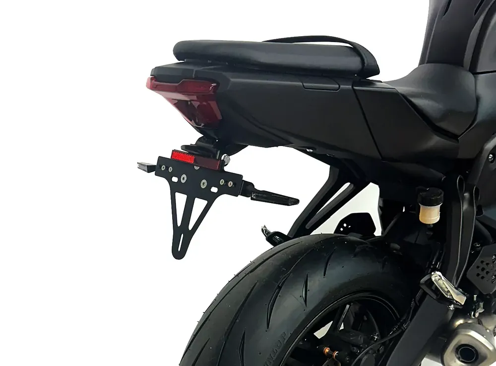 Der alpha Technik Kennzeichenhalter ist speziell passend für Yamaha MT-07 Modelle ab Baujahr 2025 entwickelt. Er überzeugt durch hochwertigste Materialien, eine hervorragende Verarbeitung und eine sportlich-edle Optik. Gefertigt aus rostfreiem Edelstahl und Aluminium mit präzisem Laserschnitt ist dieser Kennzeichenhalter besonders widerstandsfähig und leicht zugleich. Die Oberfläche ist durch schwarze kathodische Tauchlackierung bzw. schwarze Eloxalschicht elegant veredelt, wodurch sie optimal vor Witterung geschützt ist.
