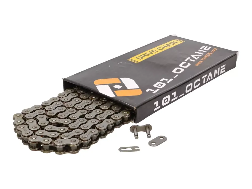 Verstärkte 415er Antriebskette von 101 Octane. 130 Glieder. Haltbar und preisgünstig.