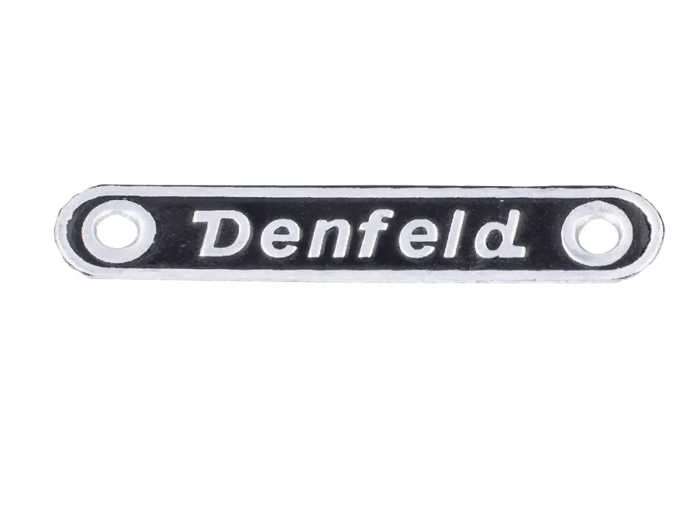 Denfeld Sitzbank Emblem in Top Qualität, passend für Zündapp, Kreidler, Hercules, Puch, Miele, DKW, KTM, Rixe, Zweirad Union, NSU Mofa, Moped, Mokick. Länge ca. 58mm, Befestigungslochabstand ca. 46mm.