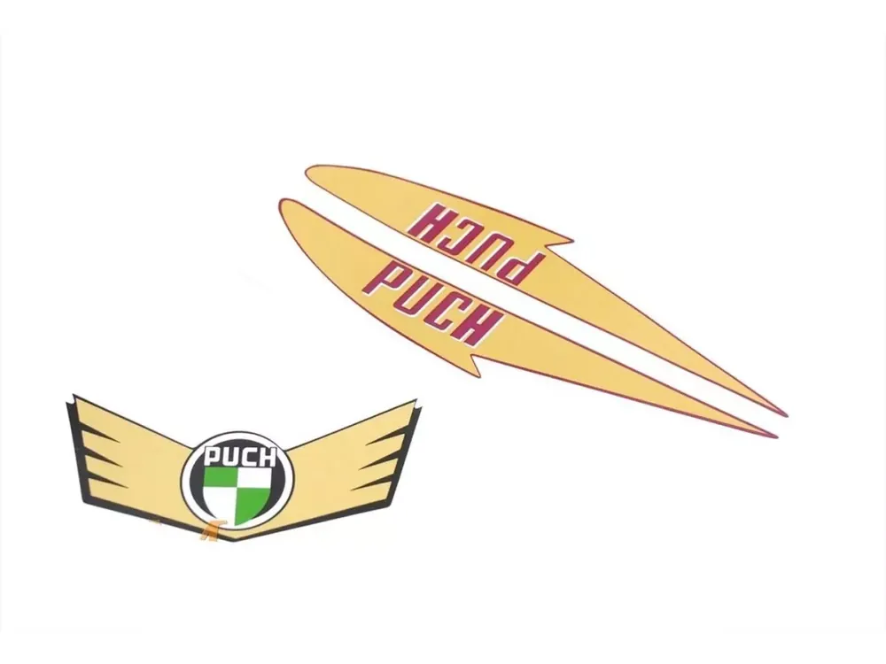 3-teiliger Aufkleber Satz für Tank und Schutzblech passend für Puch MS MV VS DS 50 bis Bj. 1961.