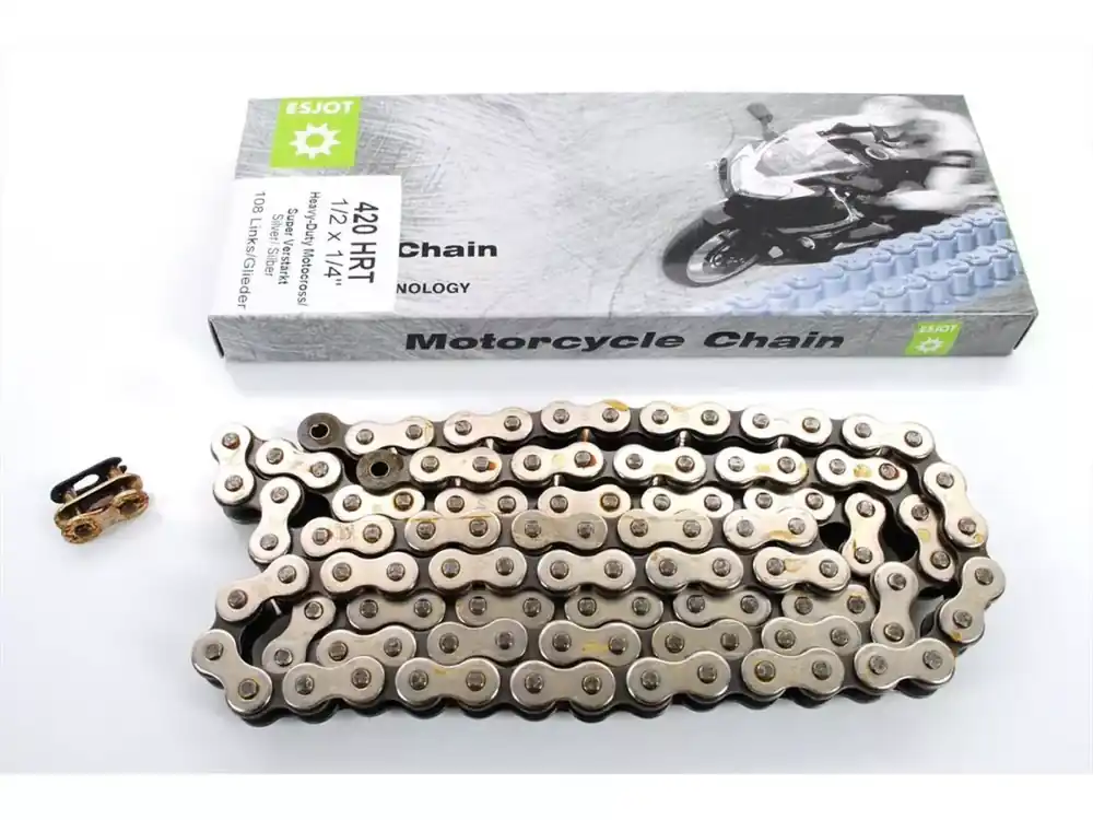 Verstärkte Motocross HRT Kette Typ 420 (1/2 x 1/4) mit 108 Gliedern von Esjot passend für Kreidler Florett RS RMC TS mit 5 Gang Motor.