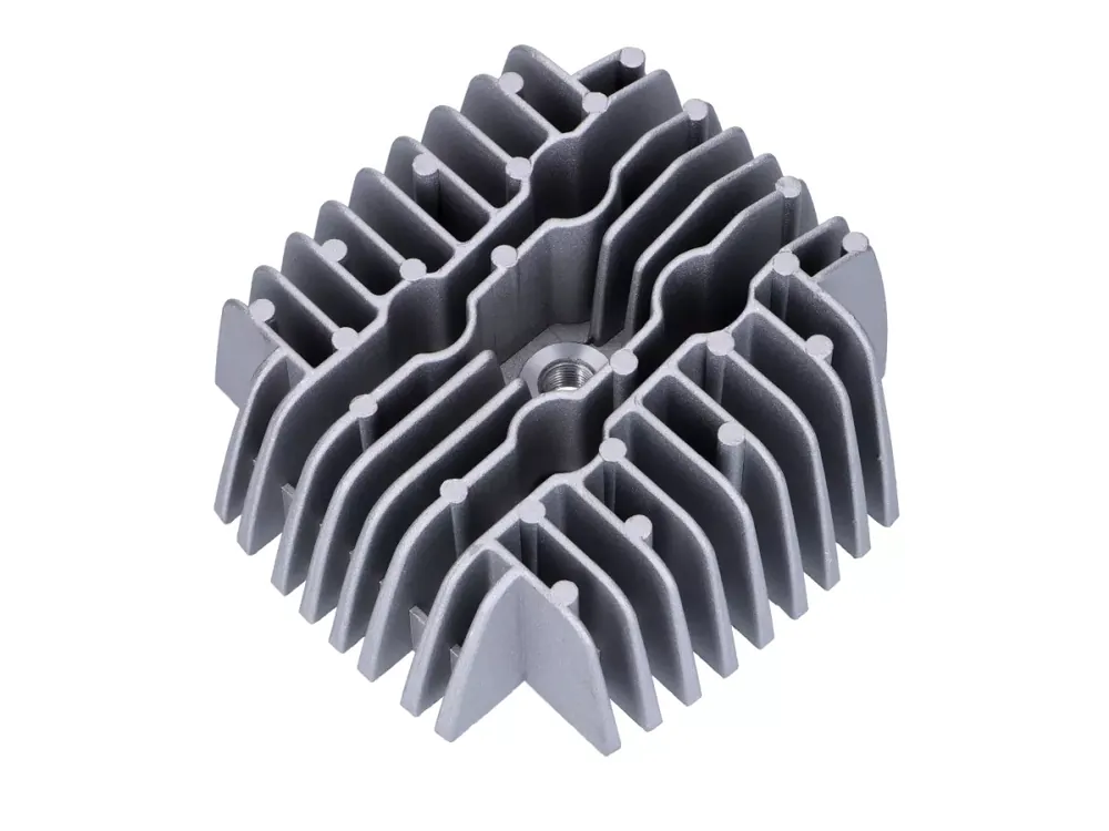 Der Zylinderkopf aus Aluminium von DMP für 38mm Bohrung passend für Tomos Mofa/Moped mit 50ccm 2-Takt-Motor.