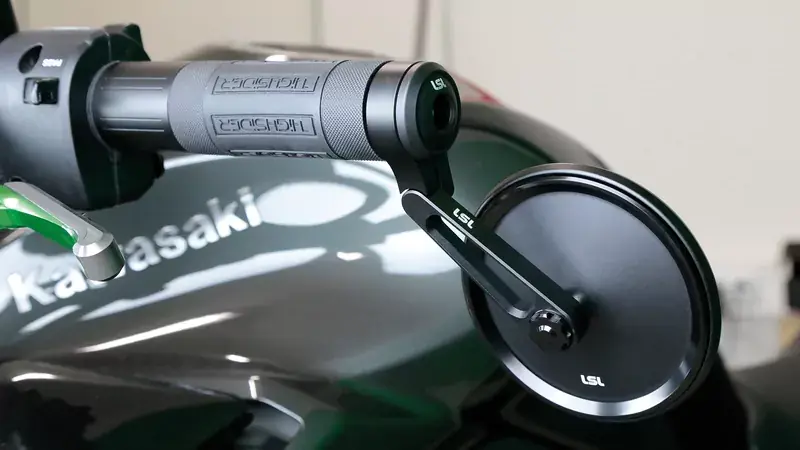 Der LSL NOVA-RUN Lenkerendenspiegel in der kurzen Ausführung überzeugt durch ein ausgewogenes Zusammenspiel aus Form und Funktion. Entwickelt für höchste Präzision, bietet dieser Spiegel eine klare Sicht nach hinten und ein edles Design. Mit seiner flachen, runden Bauform fügt sich der Spiegel harmonisch in das Gesamtbild des Motorrads ein. Das Gehäuse aus Aluminium ist fein glasperlengestrahlt und verfügt über einen seidenmatten Glanz, eingefasst von einem polierten Außenrand für ein elegantes Finish.