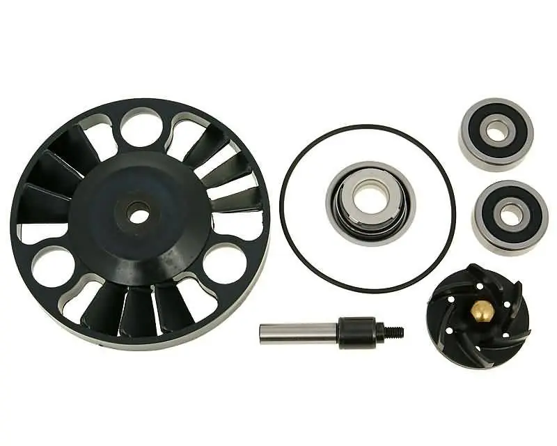 Reparaturkit für die Wasserpumpe verschiedener Maxi-Roller mit 125-200ccm Piaggio LC Motoren. Im Kit sind alle abgebildeten Teile enthalten.