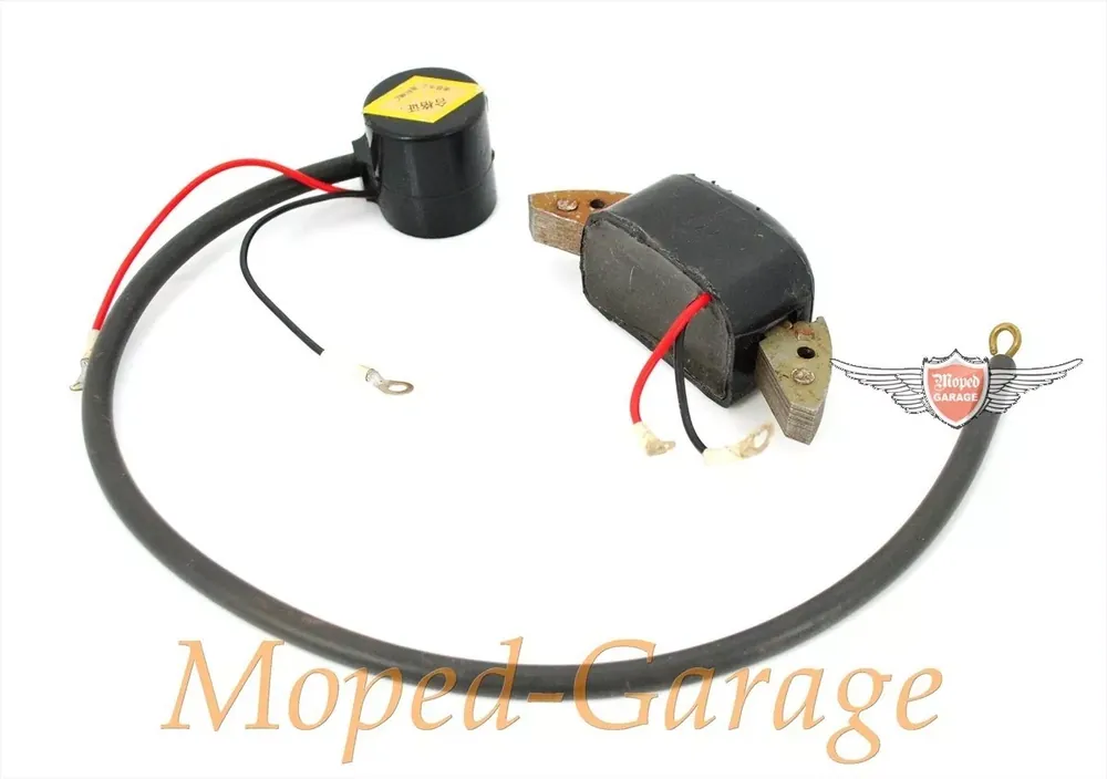 Kontaktlose Zündung mit Zündspule und Zündmodul für Velosolex 3800 Mofa Moped in Top Qualität. Benötigt keinen Kondensator, wodurch kein Verschleiß am Kontakt entsteht und immer der richtige Zündzeitpunkt gewährleistet ist.
