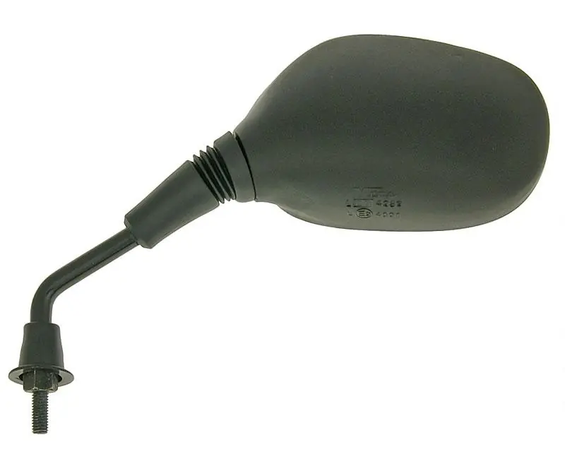 Linker Rückspiegel mit E-Prüfzeichen für Kymco Scout 50, Filly LX 50 (01-02), ZX 50 sowie Rieju Toreo 50 und Pacific 50 4T Motorroller. Natürlich kann dieser Spiegel auch an jedem anderen Motorroller mit 8mm Gewinde verwendet werden.
