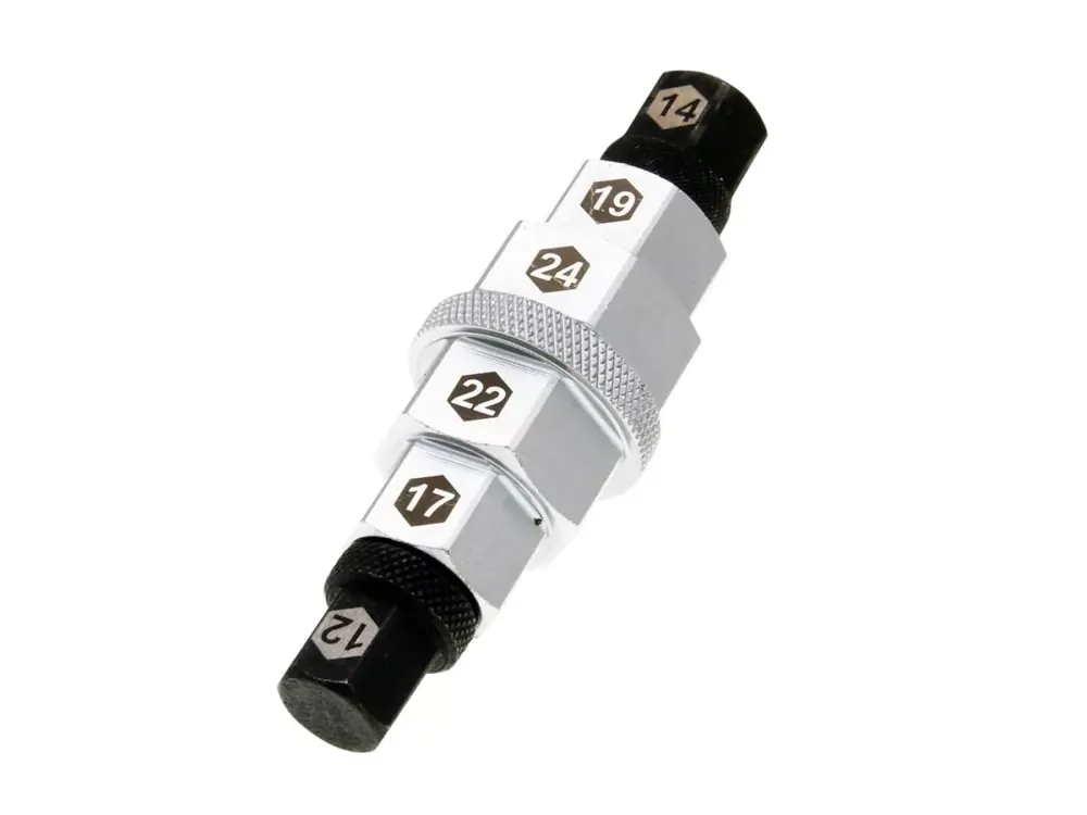 Mehrstufige Buzzetti Sechskant Stecknuss für Vorderachsen mit 12, 14, 17, 19, 22 und 24mm Innensechskant.
