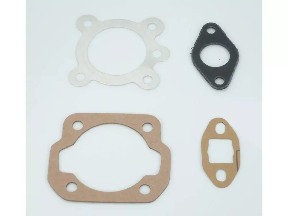 4-teiliger 50ccm Dichtsatz bestehend aus Zylinderkopf- und Fußdichtung, Ansaugdichtung und Krümmerdichtung passend für Puch Monza 1 und 2, R 82 Super TT, Minicross Super, Condor, Grand Prix 3 Speed.